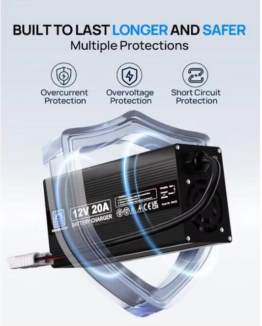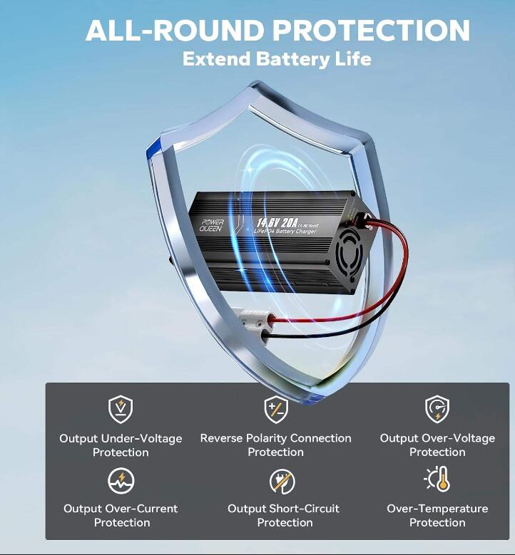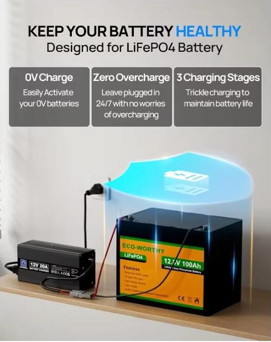 14.6V 20A LiFePO4 Battery Charger 2-Stage Smart Automatic Maintenance for 12V 12.8V 100AH Lipo Lithium Iron Phosphate Battery