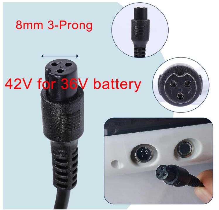 42V 2A Fast Charger with 3-Prong 0.31" 8mm Plug for 36V Lithium Batteries Pocket Mod 10s Sports Mod Electric Scooters