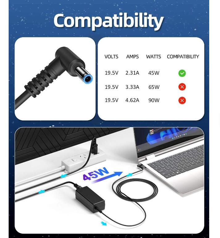 45W AC Adapter Power Cord Blue Tip Charger Compatible for HP Pavilion x360 Zbook 14u G4 G5 Notebook Stream 14 Notebook Notebook