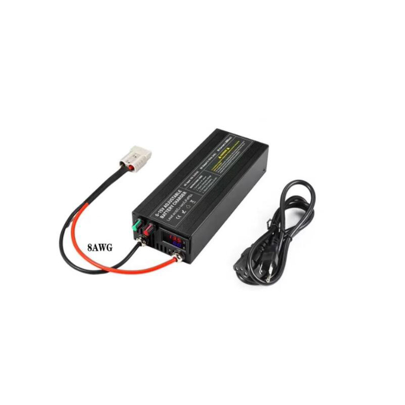 * Designed for Li-ion Battery】Capacity.Li 14.6V 50A LiFePO4 Lithium Battery Smart Charger is specially designed for 12.8V LiFePO4 battery, with fixed voltage, adjustable current, and adjustable range of 0-50A. Follow your need.(!!!Note: The fan will automatically stop running for a few minutes after a power outage.) * ✔【High Efficiency Charging】Constant current 50A, constant voltage 14.6V, very suitable for charging large-capacity LIFEPO4 batteries or lithium batteries. A 12V100AH battery is fully charged in just 2 hours, while a 10-amp multi-function charger takes 10 hours to fully charge a 100Ah battery. enough current. Current 0-50A adjustable, * ✔【Multiple Protections】capacity.Li 12V 50A lithium battery charger has multiple protections, 50A charger has over temperature/overvoltage/short circuit/overcurrent/low voltage protection to prevent damage from misuse. * ✔【Easy operation, indicator light is visible】Connect the + and - alligator clips of the charger (other interfaces can be customized) to the battery, as + to +, - to -. Then plug the input cable into the charger and connect the input power. Intuitive LED indicators provide intuitive charge status feedback and diagnostic information. A fool's errand. easy to use! * ✔【High Quality Material】Our lithium battery charger is made of aluminum alloy, with surface oxidation treatment, high hardness, anti-drop and moisture-proof, anti-oxidation, built-in cooling fan, keep the charger itself cool. Cooling protects your charger and battery. Charging is safe. Intelligent circuit chip, improve charging conversion rate, stabilize discharge voltage, charge better than ordinary chargers, more durable, weighs about 1.8KG,