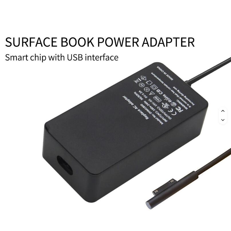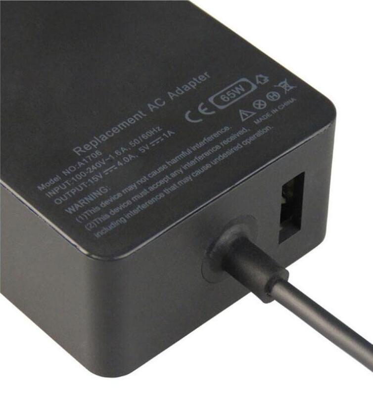 About this item * Surface Charger Input: 100-240V 50/60 Hz ; Output:15V-4A 65W * Additional USB Port: 5V-1A 5W. The USB port allows you to charge another device such as your phone at the same time * Designed for Microsoft Surface Book, Microsoft Surface Pro 3 and Microsoft Surface Pro 4 , match surface model 1706, 1866, 1796, 1724, 1625, 1867, 1735, 1800 and so on * Design with Automatic thermal, overload cut-off, and short circuit protection. Ensure the safety during the using * Package Contents - 1 x 65W power adapter, 1 x power supply cord