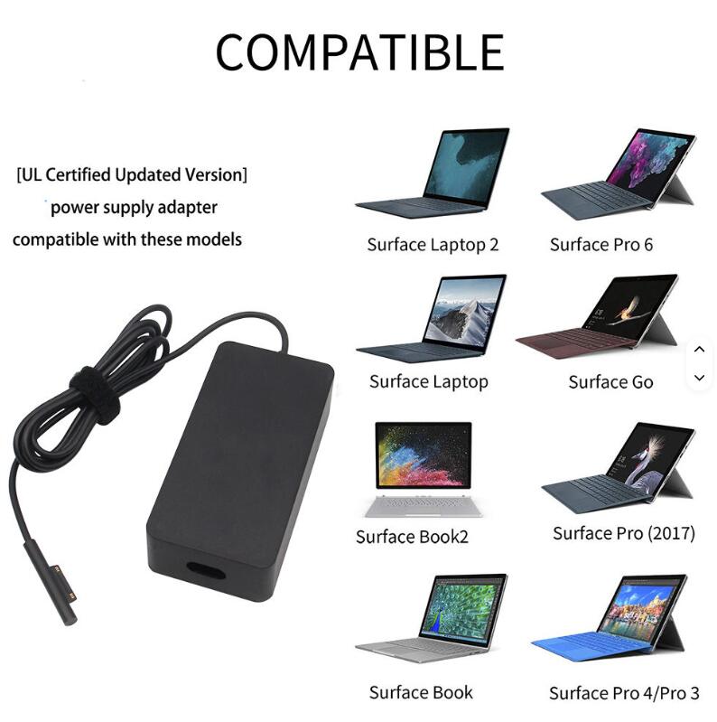 Charger 65W for Surface Pro 3/4/5/6/7/8/9/X Power Supply Adapter Compatible for Microsoft Surface Book Laptop Tablet